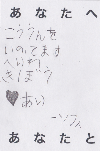 GALLERY000222 Posted on 2011/05/11 by admin No000222 名前/name ニューヨーク市立154番小学校生/PS154 New York 発信国/from アメリカ/U.S.A.
