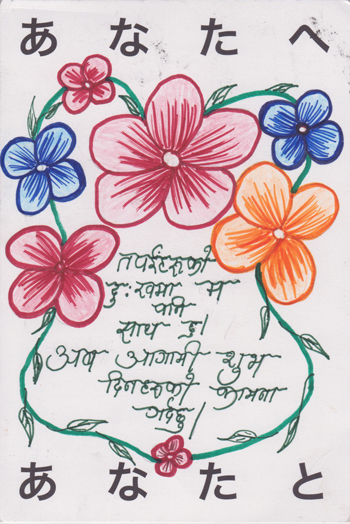 GALLERY000820 Posted on 2011/07/13 by admin No000820 名前/name Manamaya Gueung 発信国/from ネパール ヒマラヤ小学校/NEPAL Himalaya Primary School あなたが苦しいとき わたしはあなたの友 来るべく幸福のために わたしは祈ります